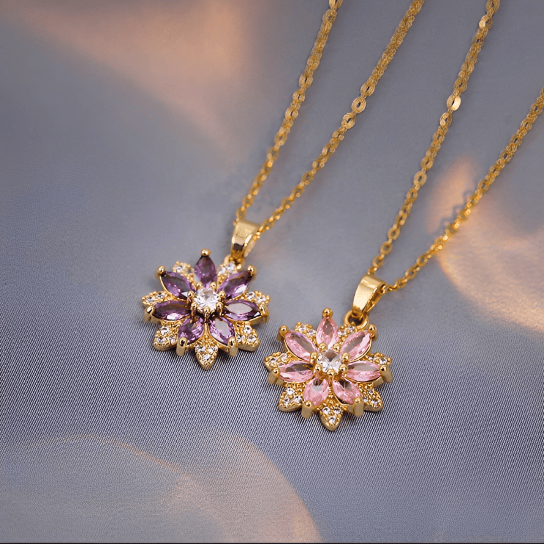 GEMSTONE FLOWER CHARM NECKLACE